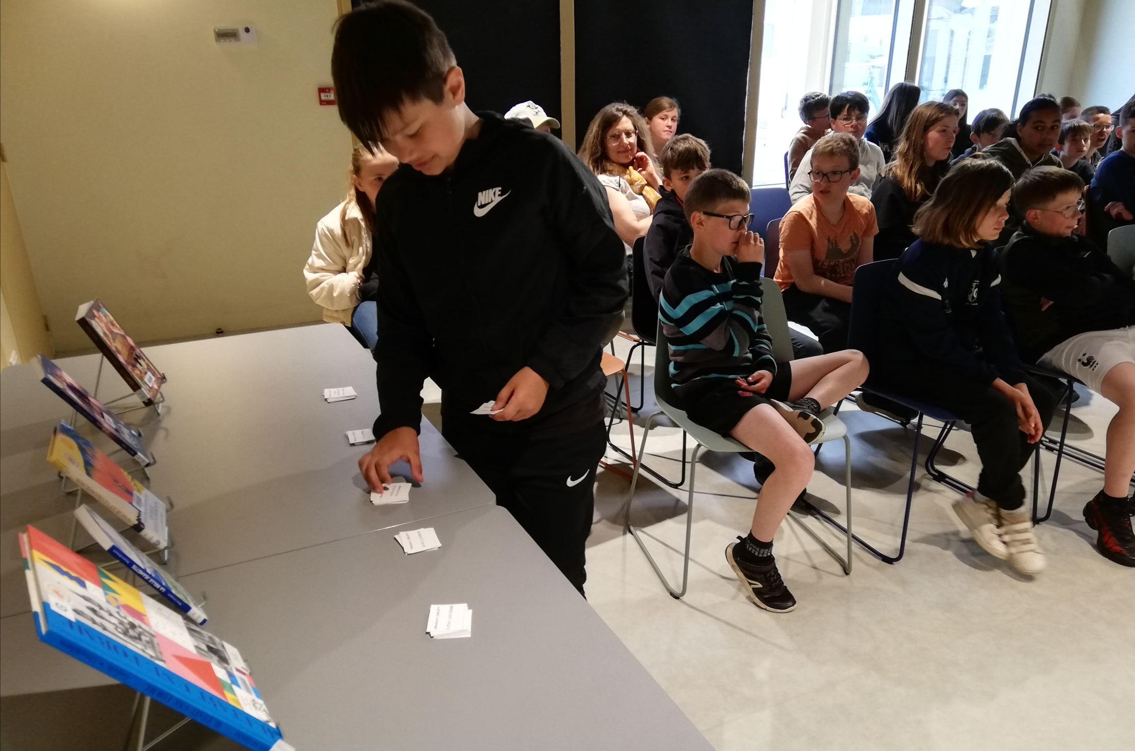 Après la lecture des 5 livres sélectionnées, les élèves des 3 classes de 6ème ont pu mettre dans l'urne de la médiathèque le bulletin de leur livre préféré. La divulgation des résultats de l'ensemble des classes participantes de Quimperlé Communauté se fera fin juin lors du salon du livre de Doëlan. A cette occasion, les 3 classes du collège auront la chance de rencontrer Marie Tibi, auteur des Kidnimaux et Marine Orenga, auteur de Bakari Champollion. Le parcours lecture n'est donc pas fini et réserve de biens belles surprises et rencontres !