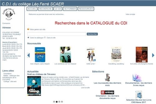 Ces documents sont accessibles par la base de données du C.D.I. : tous les élèves reçoivent une formation à ce logiciel. Le catalogue est accessible en ligne pour les élèves ou le personnel de l'établissement : https://www.toutatice.fr/pmb/opac_css/?rne=0290088N