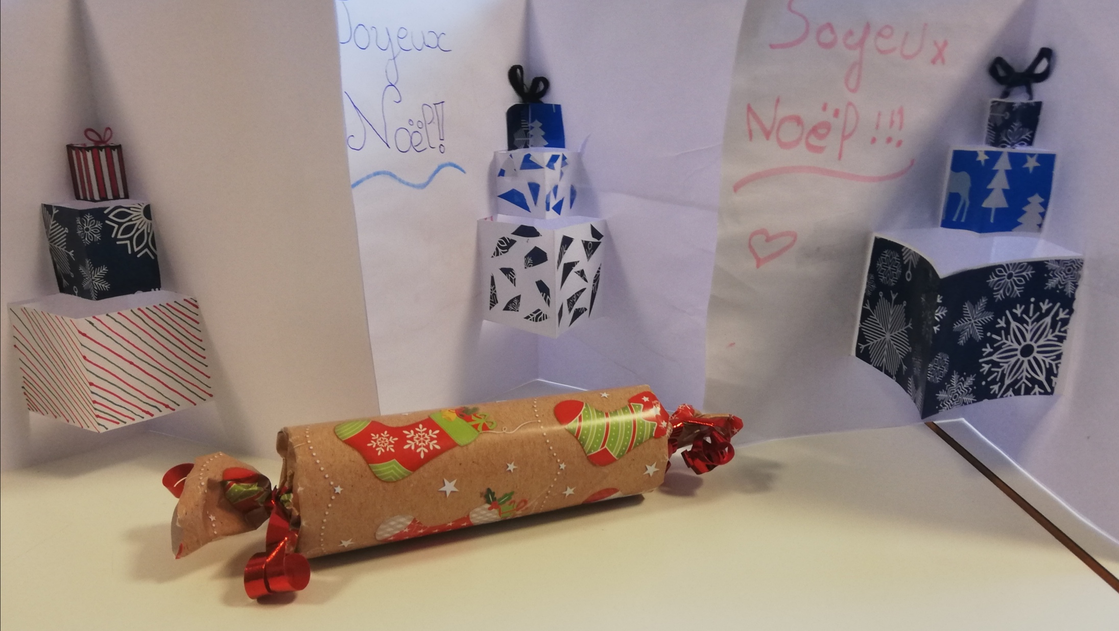 langues étrangères. Une activité intégrée aux programmes respectifs de langues vivantes. Les élèves ont ainsi pu réaliser des flocons, des crackers et des cartes de voeux en pop-up. De jolies réussites affichées au collège