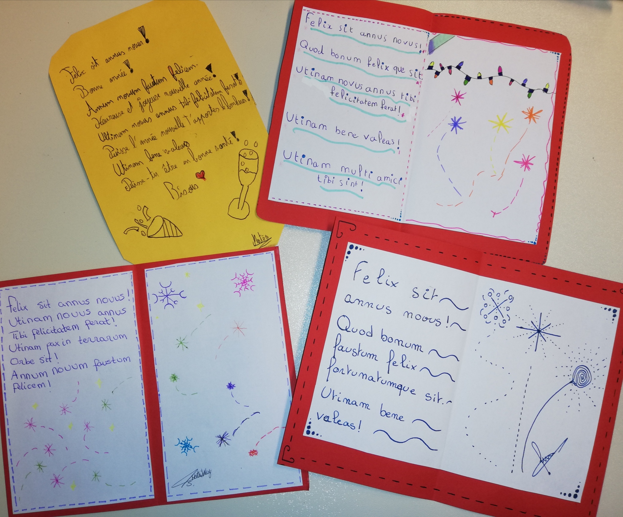 Réalisation d'une carte de vœux en latin (élèves de 5ème) :