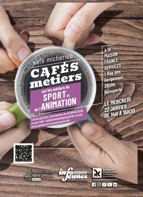 Le Service Information Jeunesse de Quimperlé communauté ( SIJ ) et la Mission Locale du Pays de Cornouaille organisent l’action « Cafés Métiers », mercredi 22 janvier 2025 à Quimperlé de 14h à 16h30.