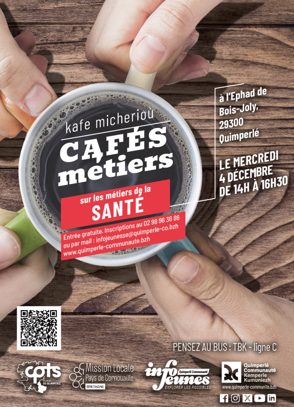 Le SIJ de Quimperlé Communauté, la Mission Locale du Pays de Cornouaille et La Communauté Professionnelle Territoriale de Santé (CPTS) organisent un café métiers sur cette thématique.