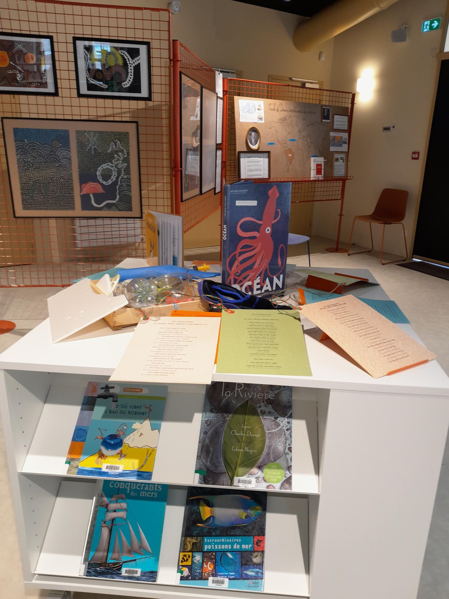 Le séjour des 6èmes à l'Ile Tudy est aussi intégré au projet. D'autres travaux sont présentés : des affiches en espagnol sur le thème de l'eau (voir page travaux d'élèves), en SVT (les "petites bêtes", le plancton, microscope à disposition), en arts plastiques (Espace Culturel Youenn Gwernig), en EPS (chorégraphie)... Enfin les visites et activités pratiquées grâce à nos nombreux partenaires sont aussi mises en avant.
