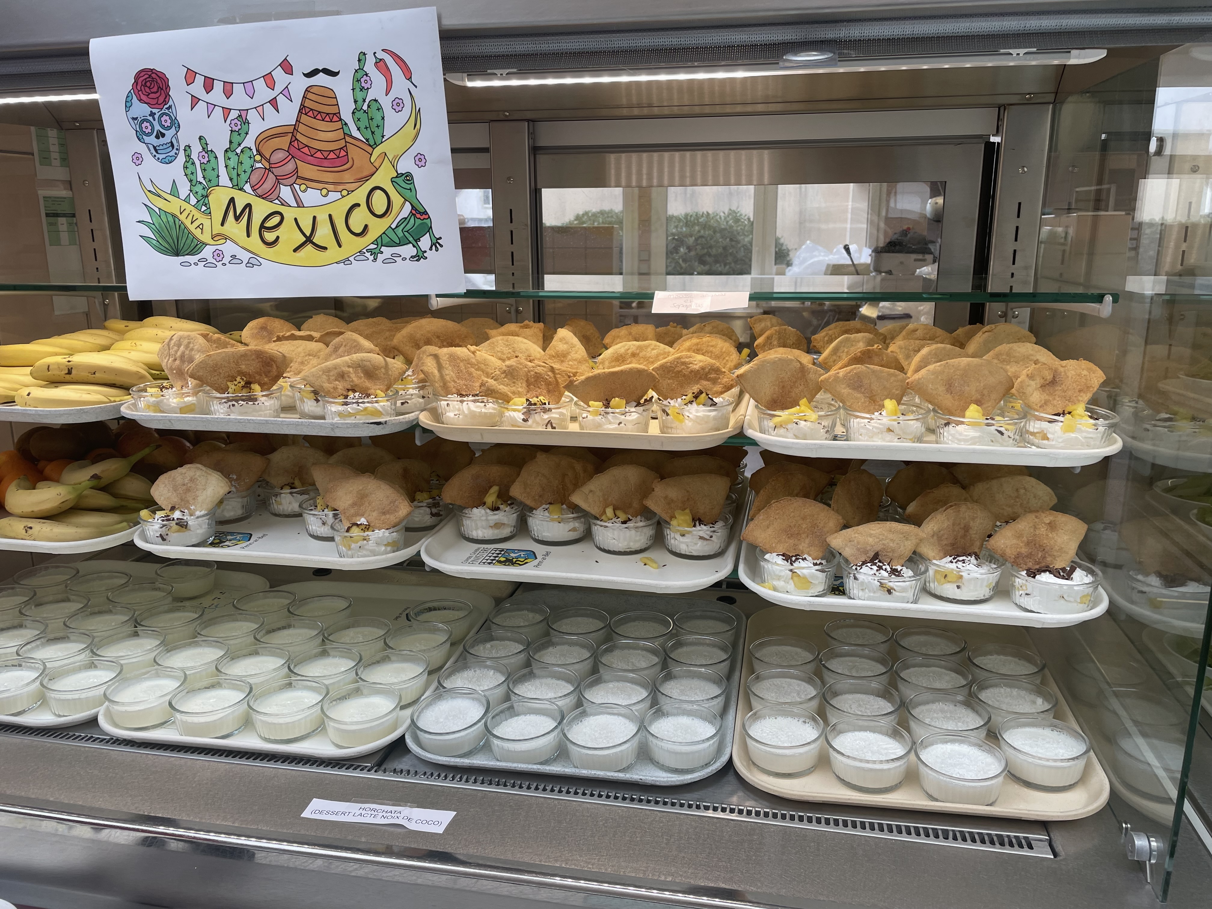 Ce Jeudi 23 novembre a été marqué par le menu mexicain. La communauté éducative a profité d'un menu spécial qui nous a fait voyager.Guacomole, tortilla au chorizoTacos au poulet et poivrons sauce cheddarMousse à l'ananas ou sopapillas